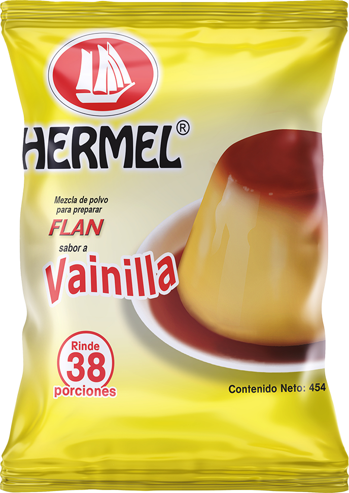 Calentar 3 1/2 litros de leche hasta que comiece a hervir, agregar poco a poco el contenido del flan (450 g), hervir por 2 minutos y refrigerar.